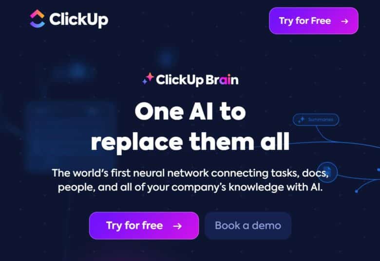 ClickUp Brain focuses on project management and task automation. It offers multiple functionalities in one package, including writing content, managing work and updates, and retrieving information. ClickUp Brain also helps you with planning, so your workflow proceeds smoothly.