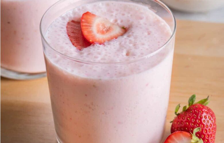 • Fresh Strawberry Vanilla Smoothie – This quick protein powder recipe is made with fresh strawberries, bananas, Greek yogurt, milk, and protein powder. It’s easy to make and contains 21 grams of protein per serving!