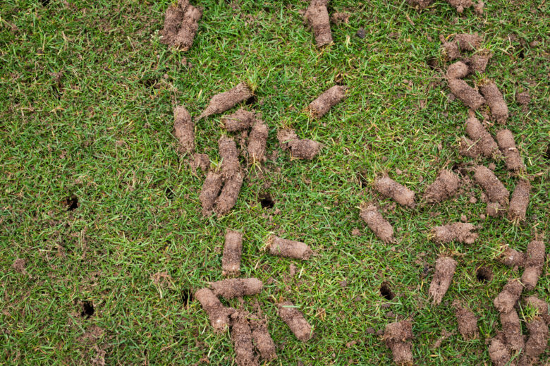 Lawn aeration involves poking holes in the soil to loosen it. Core aeration goes the extra mile (when compared to liquid aeration) by actually removing soil plugs from the ground.