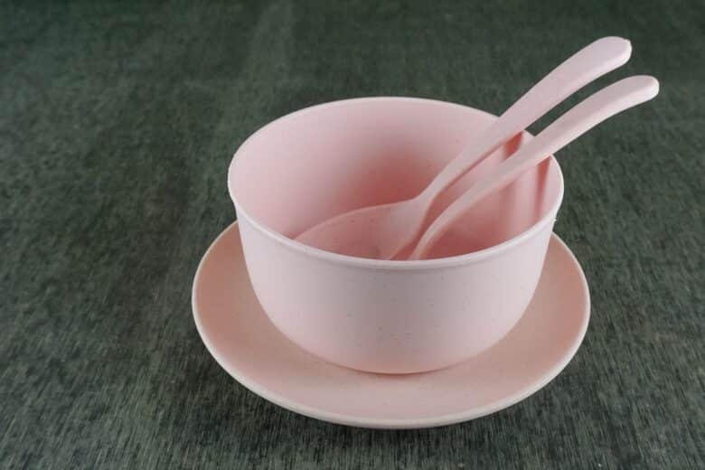 We love the Ikea utensils. They are sturdy and can be put through the dishwasher many times. The KALAS is made from polypropylene rather than wheat, bamboo or corn.