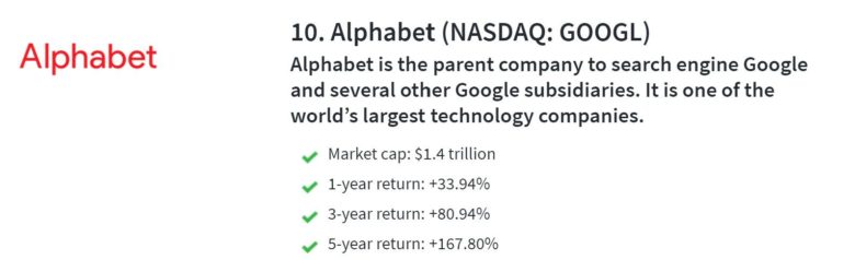 10. Alphabet (NASDAQ: GOOGL)