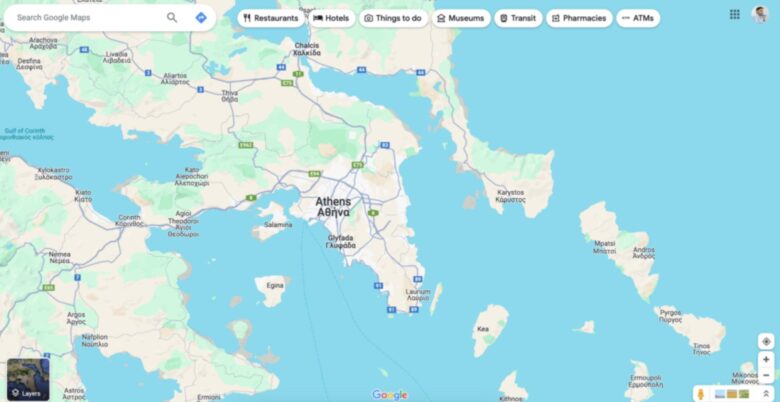 The navigation bar on the top allows you to view restaurants, museums, and other places of interest. The icons only appear when you zoom into the map, close enough for cities to become visible.