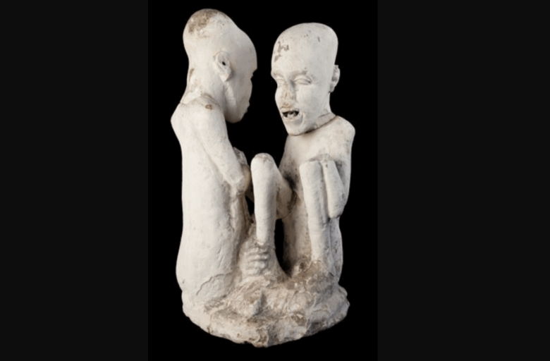 This ancient Egyptian statue depicts two figures with unnervingly enlarged heads and emaciated bodies. The style does not match any known Egyptian art period. Some speculate it depicts a genetic disorder or represents a foreign culture, but its origin remains obscure.