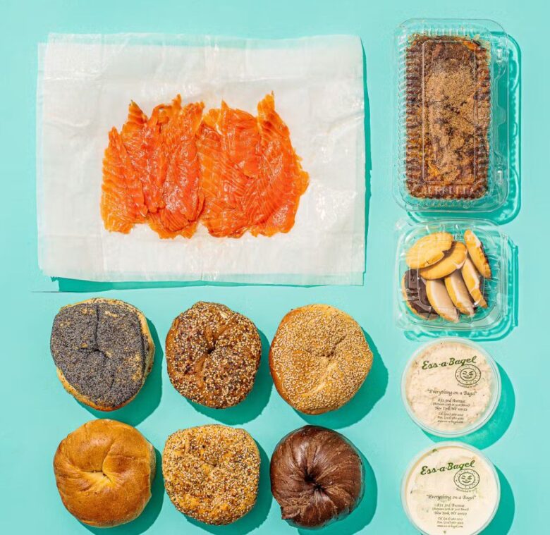 Family-owned for over 35 years, Ess-a-Bagel is beloved for its big, chewy, crusty hand-rolled and kettle-boiled bagels made the old-fashioned way. Ess-a-Bagel tops this package of six bagels off with nova, cream cheese, white fish salad, chocolate babka, and mini black & white cookies.