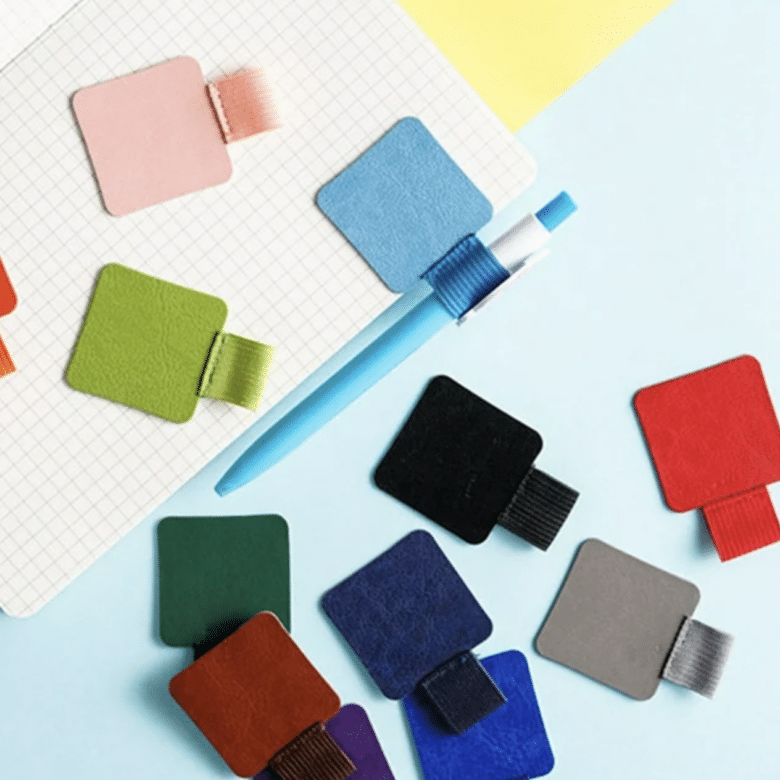 Always losing your pen? This genius gadget from Sardfxul is a square piece of leather (about 1½ inches) that attaches via an adhesive to a diary, journal, notebook, schedule, calendar, tablet case or whatever else you need to write on. It has an elastic loop that allows you to slip a pen through and keep it securely in place.