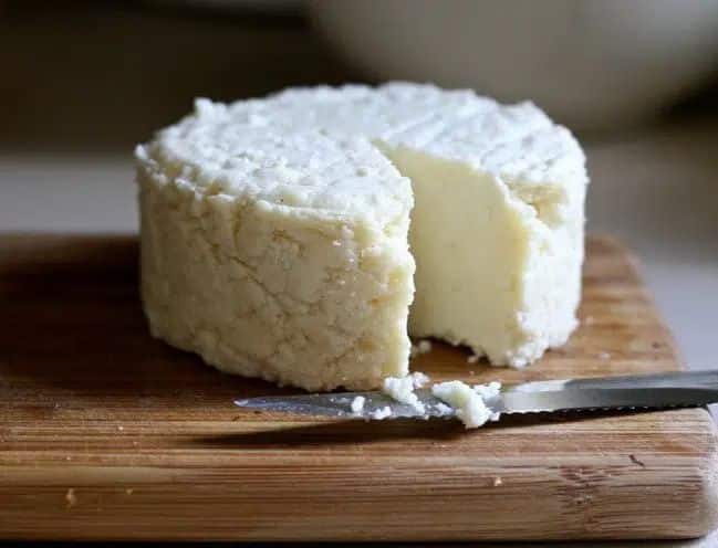 It was created by Mary Holbrook at Britain’s Sleight Farm, and is made using goat’s milk and pressed by hand. The cheese is firm, crumbly, dense and savory, and coconutlike in appearance. Unfortunately, Mary Holbrook passed away in 2019, and her signature cheese creations are no longer in production.