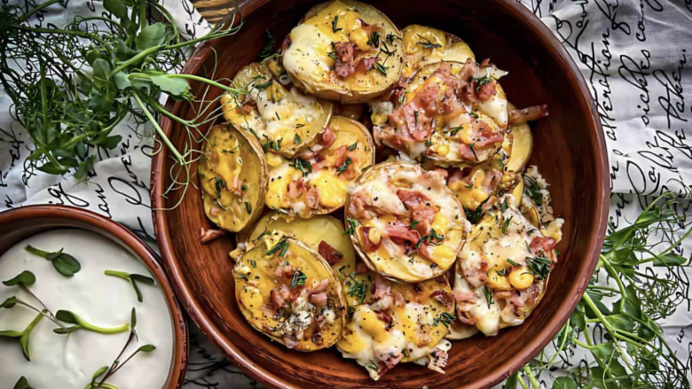 These baked potato slices are packed with cheesy bacon goodness and crisp up perfectly in the oven. A great alternative to regular baked potatoes, these slices make for an easy and tasty side dish. If you’re looking to work more root vegetables into your meals, this simple recipe is a crowd-pleaser. Plus, it has the perfect crunch every time!