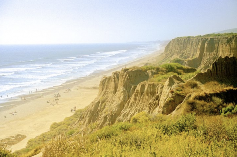 An elevated view of San Onofre State Beach outside of San Diego, taken on Kodak Gold 100 film.