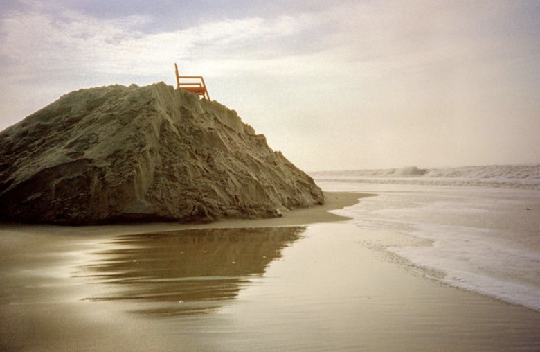 A lifeguard chair on a mountain of sand in Long Beach (LI), photographed on Fujicolor 200 film.