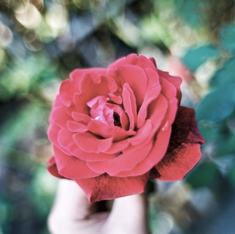 A rose photographed with a Canon 28MM f1.8 lens, shot wide open with Kodak 100UC film.