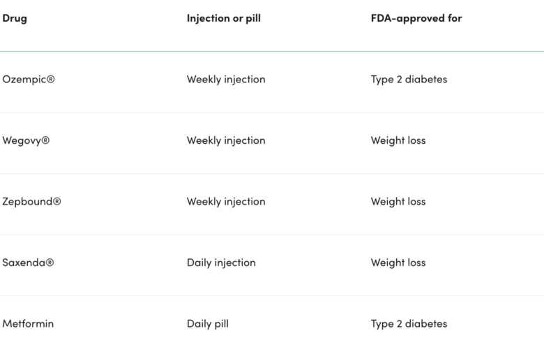 Saxenda contains the active ingredient liraglutide, another GLP-1. The big difference is that liraglutide is a daily injection instead of a weekly one.