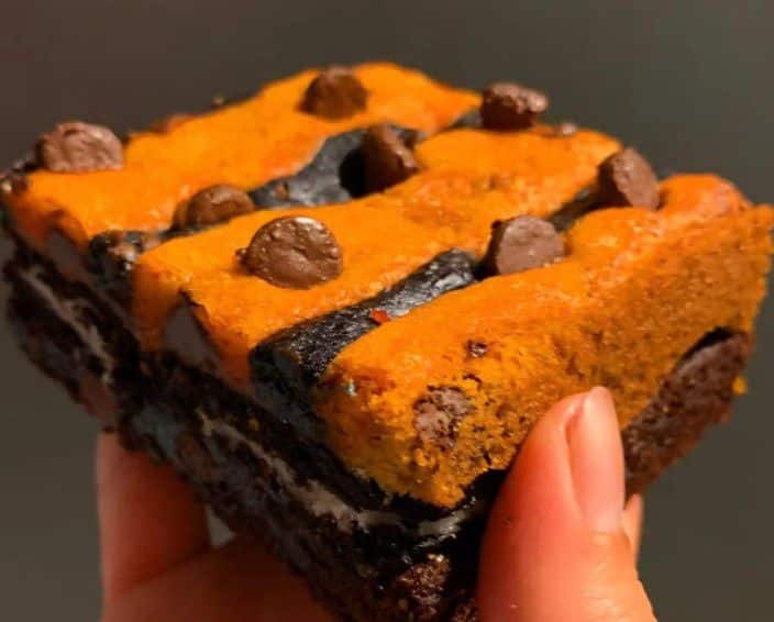 Orange brownies and cookies are a no-brainer, and this Halloween Oreo Brownie & Cookie Combo are loaded with Oreo cookies! The accompanying orange & black cookies are soft, gooey, and loaded with chocolate chips.