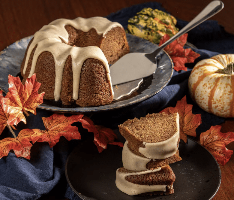 This Pumpkin Maple Bundt Cake features the seasonal flavors of earthly pumpkin purée, allspice, and warm cinnamon. Adorn it with the included maple cinnamon cream cheese frosting to perfect this delicious and satisfying dessert.