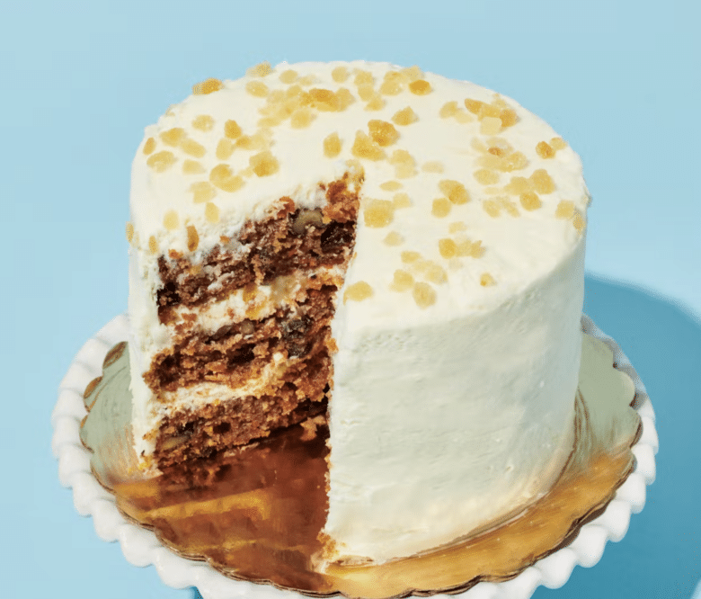 From none other than Ina Garten herself, this 6-in. carrot cake is made with plenty of freshly-grated carrots and a hint of cinnamon. It’s studded with juicy raisins and crunchy walnuts. The creamy frosting is enriched by Italian mascarpone and cream cheese, and it’s topped off with a touch of candied ginger!