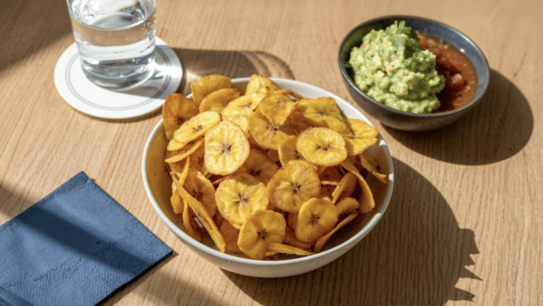 And if you want to serve your guac and pico with something healthier than tortilla chips, consider making homemade yuca or plantain crisps. You just need yuca or plantain and an air fryer (though baking on high heat in the oven can work, too).