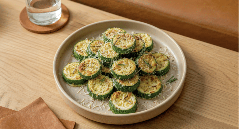 It’s as easy as it is delicious. Slice fresh zucchini into rounds, then sprinkle with a mixture of grated parmesan cheese, chopped rosemary, and a dash of salt and pepper.