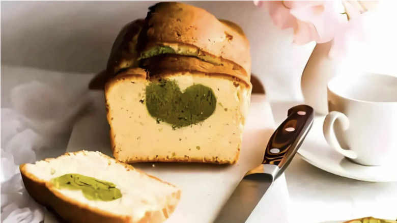 This matcha pound cake has a sweet surprise inside—a hidden heart in every slice. The soft, buttery texture pairs perfectly with the earthy matcha flavor, making it a unique and thoughtful dessert. Heart-shaped recipes like this add a special touch to any occasion. Serve with a dusting of powdered sugar or a drizzle of glaze!