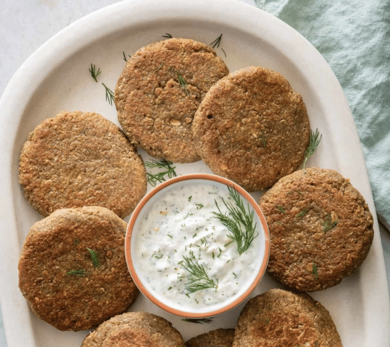 Lentil cakes with a creamy lemon dill yogurt dip make for an easy, healthy and delicious appetizer. Simple to make and packed with protein.
