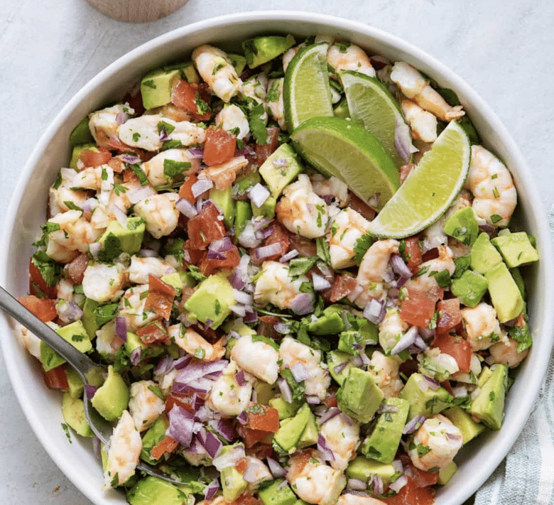 This Avocado Shrimp Salsa is a bright & zesty recipe! It makes the perfect appetizer or even main dish for parties. Serve with tortilla or pita chips and enjoy!