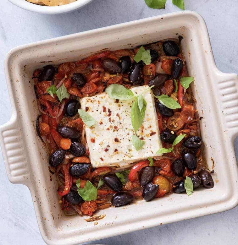 Simple and easy to make with fresh ingredients, this baked feta dipis an effortless appetizer that’s made for sharing- perfect with crackers