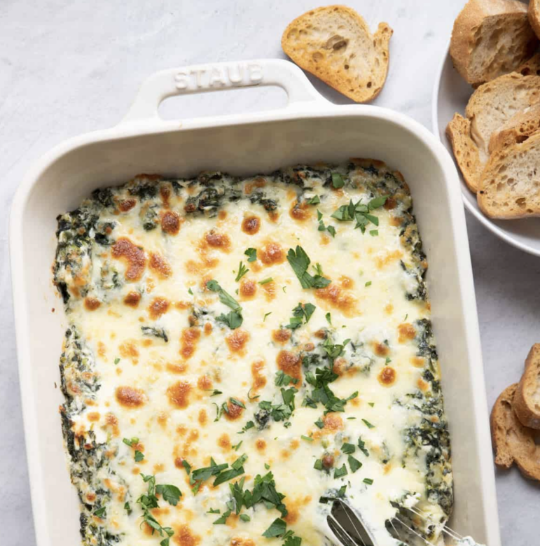 This Cream Cheese Spinach Dip is a rich creamy dip that is a made with greek yogurt instead of sour cream – great with bread and crackers!