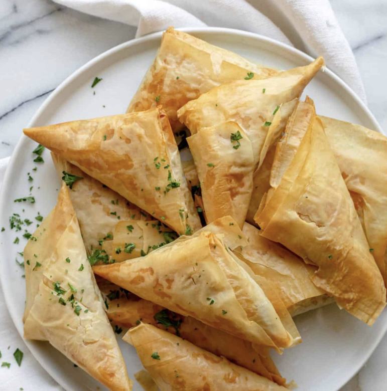 Made with just a few simple ingredients, these delicious spinach and feta spanakopita triangles are a fun appetizer recipe to make at home.