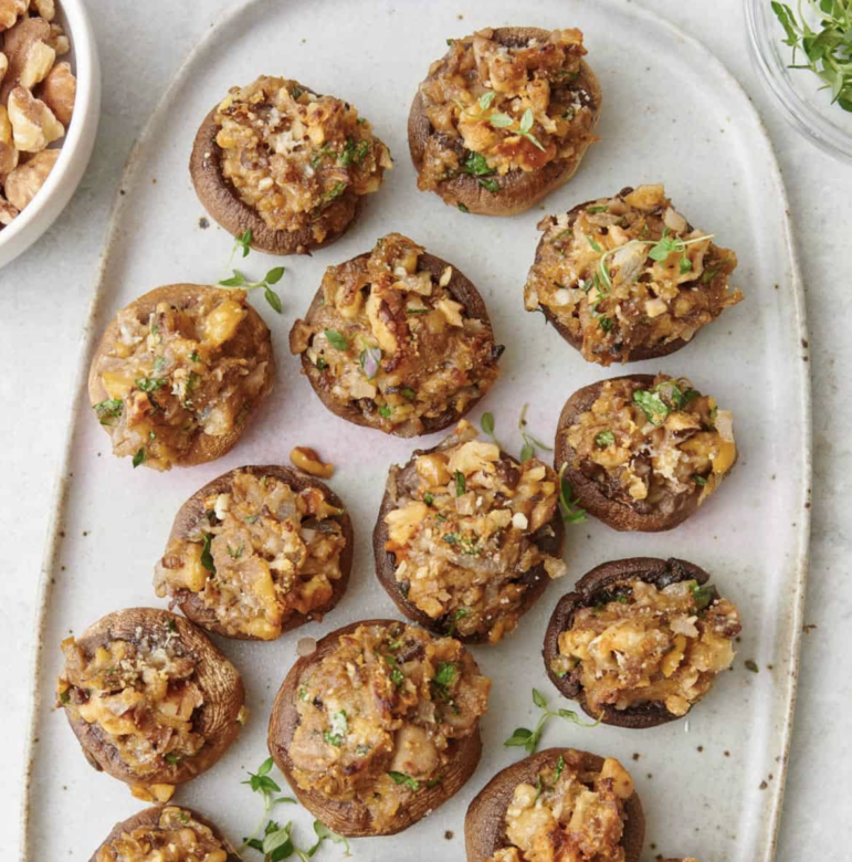 These Vegetarian Stuffed Mushrooms are perfect to serve as appetizers at your next holiday gathering. They are flavorful, cheesy crowd pleasing finger foods
