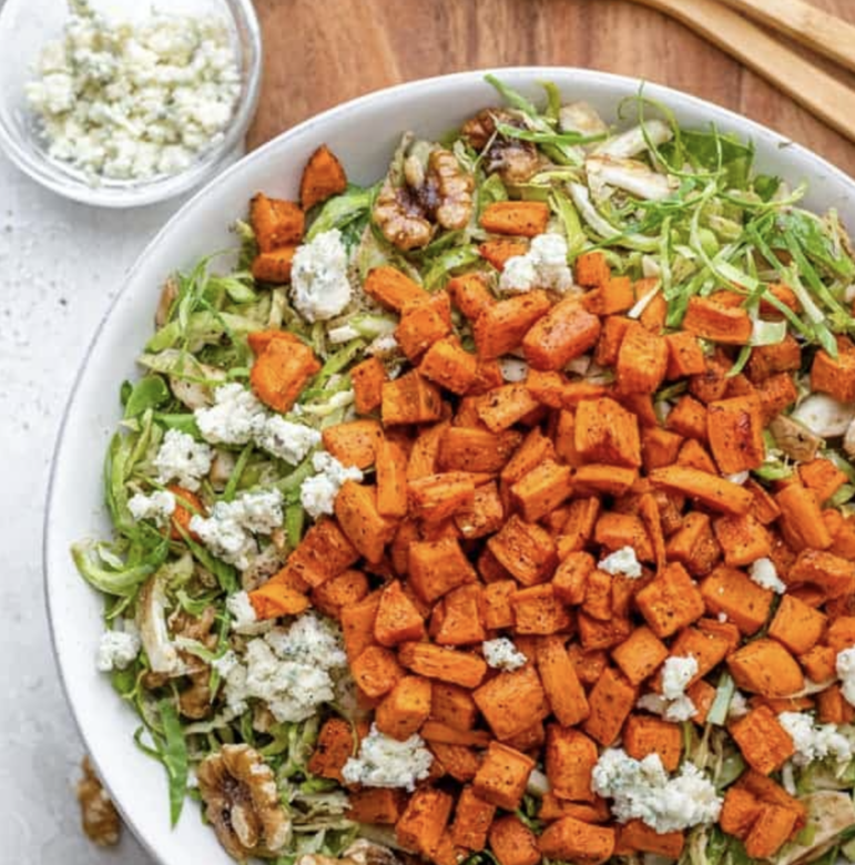 No more boring salads! Easy to make, this Brussel Sprout Sweet Potato Salad is full of flavor, color and texture – pairs with many main dishes