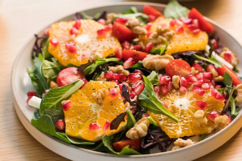 3. Give texture a glow-up with a crunch. Healthy vegetarian Christmas dinners don’t have to be boring. Sprinkle candied pecans, roasted pumpkin seeds, or toasted sesame seeds over your winter salads or soups.