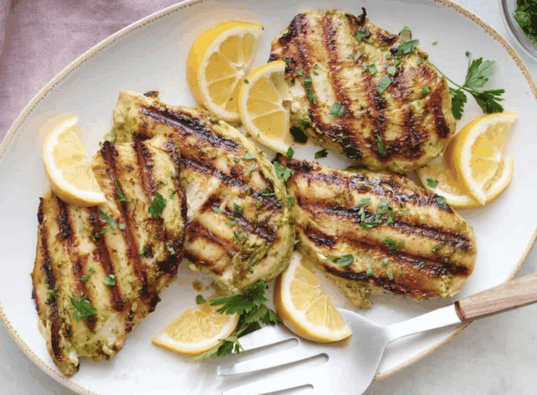 This Pesto Grilled Chicken is made with Greek yogurt and pesto marinade that is then grilled for about 15 minutes, and it’s ready to eat!