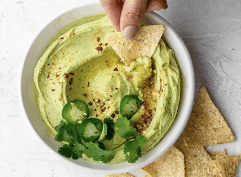 This avocado hummus is a modern twist on plain hummus and guacamole – a healthy, vegan, easy snack or appetizer with pita or veggie chips!