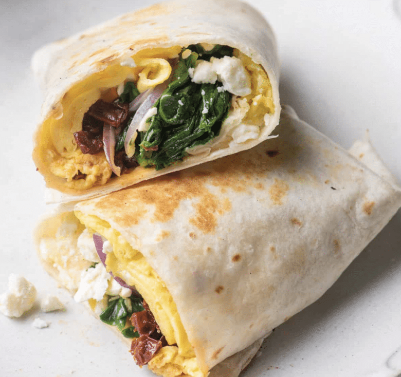 This Mediterranean Egg Wrap is a breakfast sandwich that is packed with protein, color and incredible flavor- perfect for on-the-go mornings!