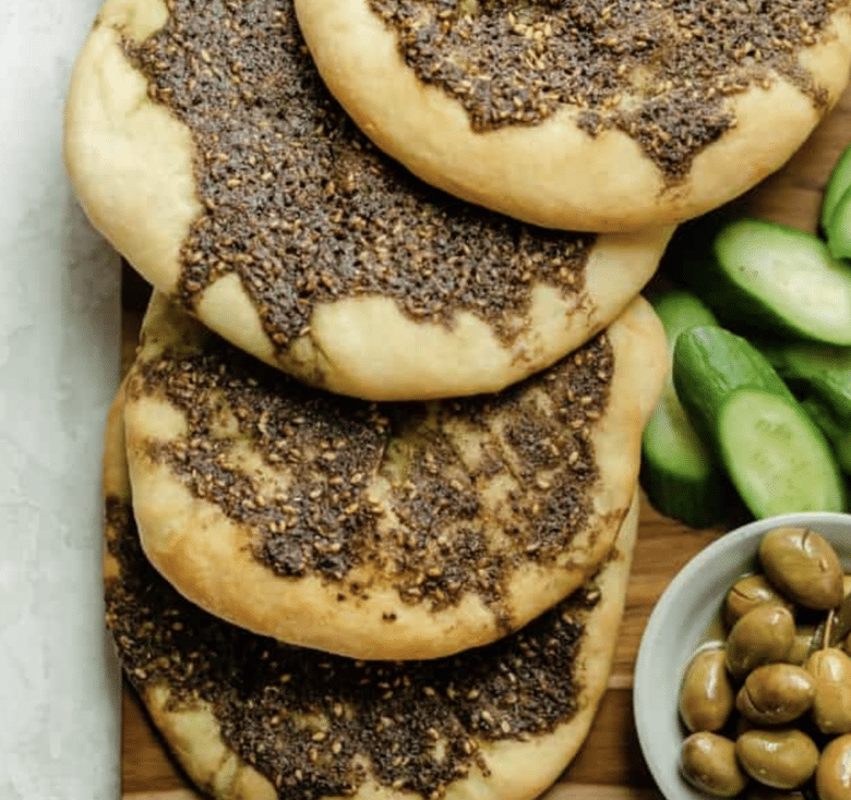 Zaatar Manakeesh is a Mediterranean flatbread that’s made with dough and zaatar spice. It’s an easy recipe to make from scratch using very few ingredients!