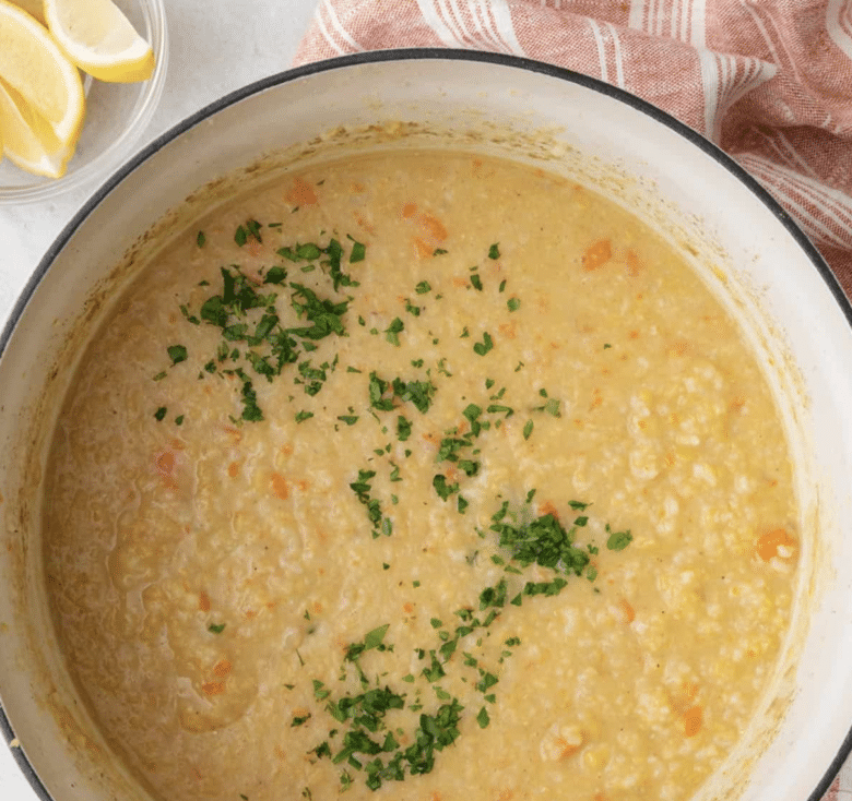 Learn how to make this authentic healthy Lebanese Crushed Lentil Soup in 30 minutes! Made with simple pantry ingredients, it’s vegan, hearty and so filling!