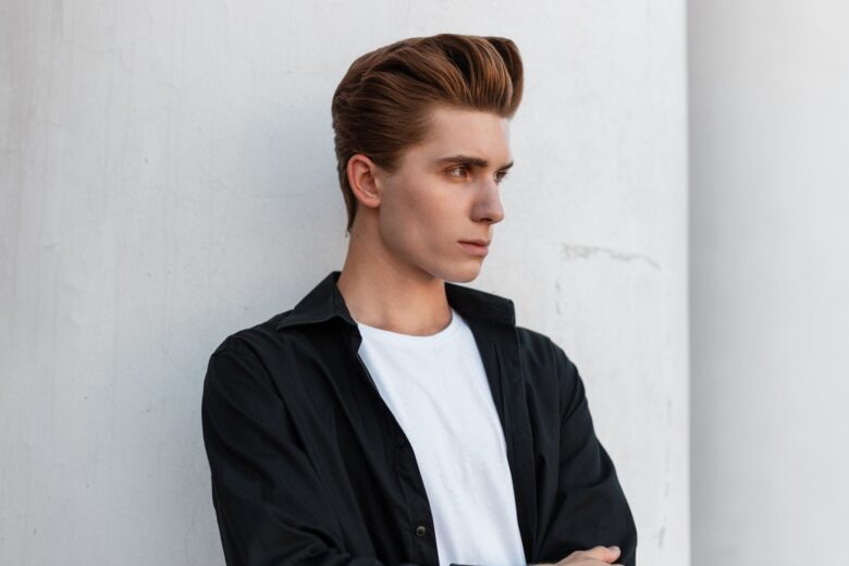 Second, while the pompadour won’t hide a receding hairline, it can accentuate your hairline as a natural part of your face and turn it into a feature instead of a bug.