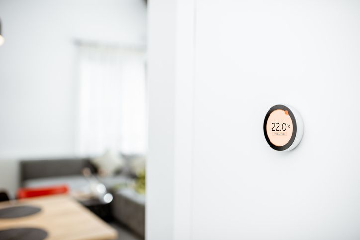 A programmable thermostat allows you to automatically regulate your home heating and air conditioning. Programmable thermostats can save numerous temperature settings for each day, and allows you to create a recurring schedule for when and at what temperature your heating and air conditioning system runs. Some newer smart thermostats will also communicate via Wi-Fi and even account for outdoor weather.