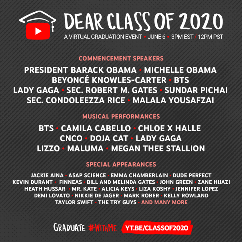 Perhaps the most highly anticipated livestreaming event since the pandemic came to town, YouTube Original’s Dear Class of 2020 is a virtual commencement ceremony featuring more than two dozen artists and celebrities, including Beyoncé, Taylor Swift, Lizzo and Lady Gaga. President Barack Obama and Michelle Obama will deliver a commencement address.