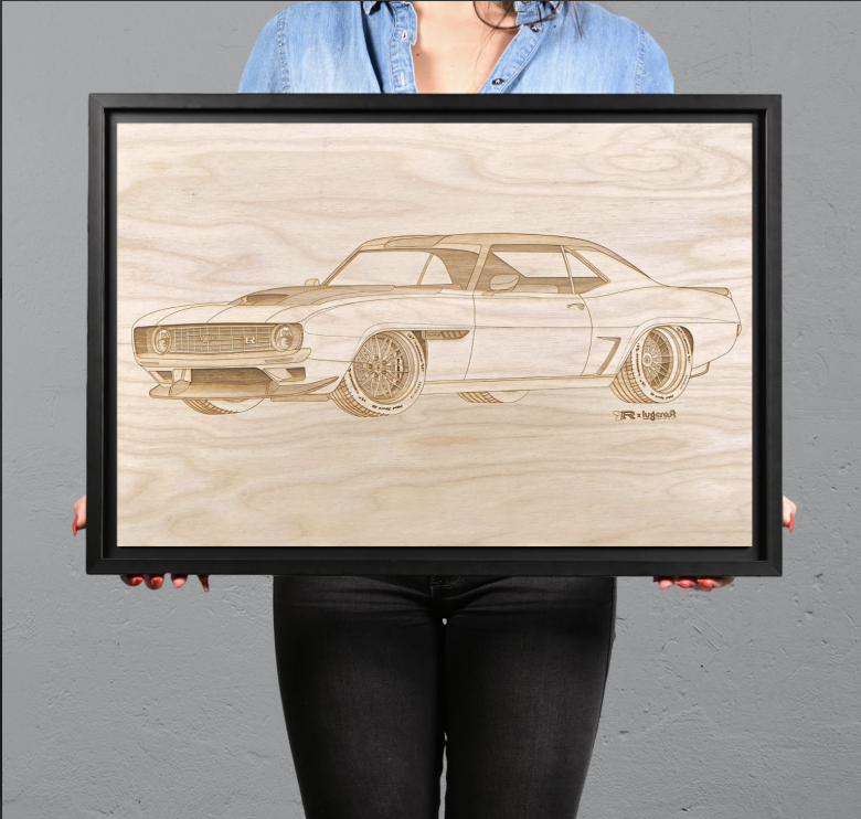 13. Lugcraft Camaro Framed Wood Engraved Artwork