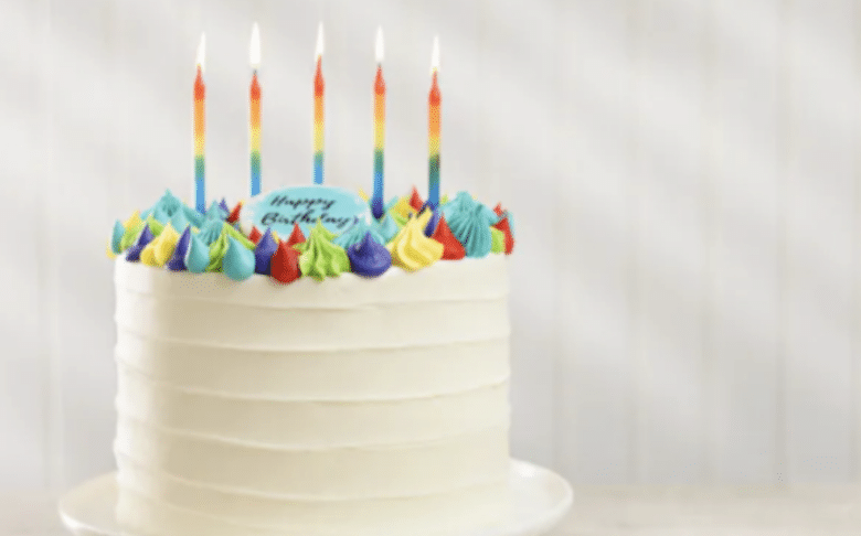 This 6-inch, 4-layer vanilla cake is made with gluten-free flour. It’s expertly frosted with buttercream and comes with a Happy Birthday plaque and 12 candles.