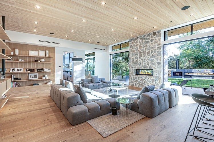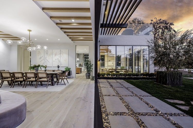And windows, lots and lots of floor-to-ceiling windows. Sophisticated smart homes are all the rage, as are connected outdoor spaces, white rooms and simple color palettes, open floor plans, glass walls allowing for ample natural light, green features, security settings, and the utmost privacy.
