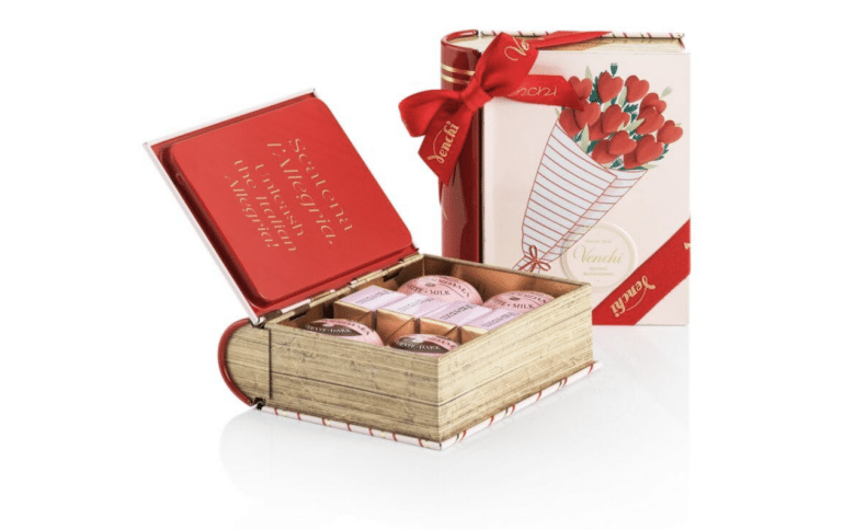 This adorable, reusable metal candy box is shaped like a book, and inside, you’ll find a selection of delicious milk and dark BaciodiDama and Gold Caramel Cremino chocolates.