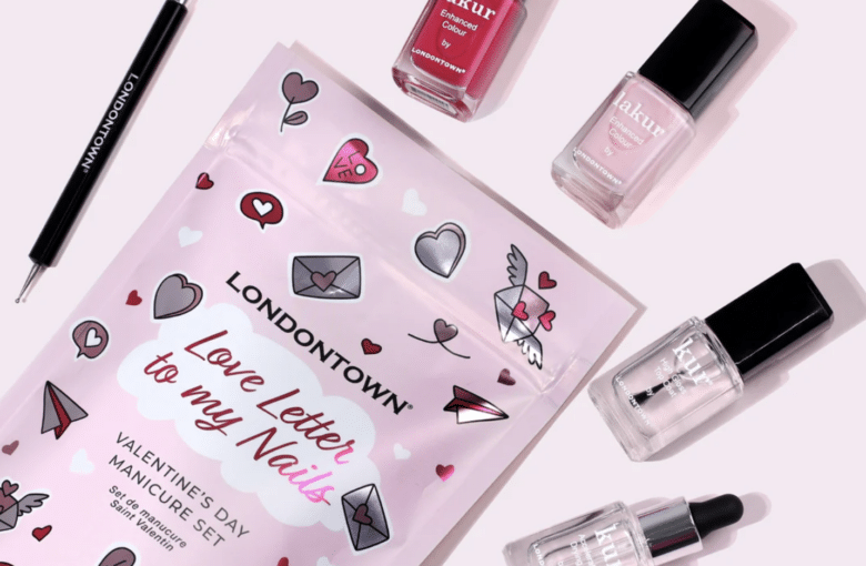 Londontown’s popular Valentine’s Day kit returns with hand-selected essentials for a beautiful at-home Valentine’s Day manicure! The ready-to-gift set includes a hot pink polish, a baby pink polish, High Gloss Top Coat, Accelerating Drying Oil, and a Dot & Detail Nail Art Tool with instructions for creating nail art hearts.