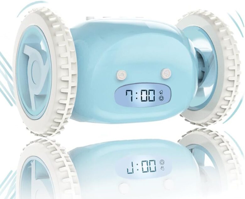 This alarm clock prevents that problem, because it wheels away and hides from you until you get out of bed and manually turn it off. Genius.