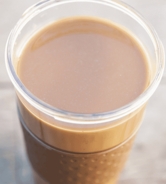 To make this latte all you need to do is add some cold brew and mix in the toasted Hazelnut coconut milk until it’s the strength you like it. For me it’s 1/4 cold brew to 3/4 nondairy milk. Then add a squirt or two of chocolate syrup. Want a frappuccino instead? Add the latte mixture plus a pinch of xanthin gum or 1/2 teaspoon ground chia seeds to your blender and blend well. Add crushed ice and blend until it’s as thick as you like it. I like mine very thick so I do about 1 cup ice to 1 cup latte blend.