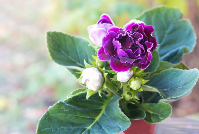 For a houseplant that you can take outside in the summer, gloxinia offers velvety green leaves year-round and bright blooms in the spring.