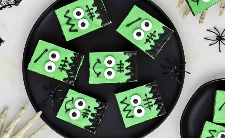 These Frankenstein cookie bars are a fun treat that kids will love. Made with a cake mix and topped with colorful frosting, they’re easy to whip up for any Halloween celebration. This recipe is a standout among cute Halloween recipes that make baking a breeze!