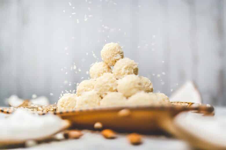 With this recipe, you don’t even need to make the cake for your cake balls! Just buy white chocolate mud cake or any other cake your store has (or check this mud cake recipe out if you’re feeling ambitious) and crumble it up in balls, frosting and all! Melt a block of white melting chocolate on your stovetop, and pour over the balls. Top with sprinkles and let cool.
