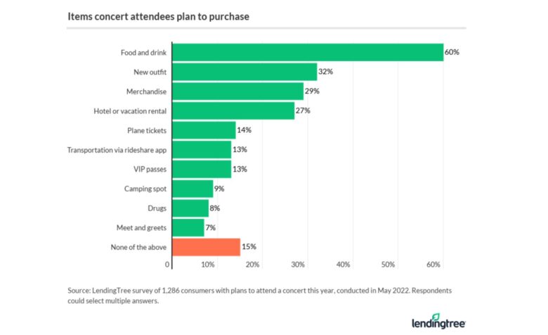 With the third pandemic summer just around the corner, music fans are gearing up for the return of concerts and music festivals. And according to the latest LendingTree survey, attendance is expected to return to pre-pandemic averages this year — with concertgoers ready to shell out dough to make up for lost time.