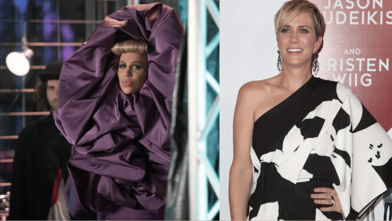 But in real life, Wiig looks nothing like her character. She’s pretty down-to-earth. Her lips are standard-sized, and her hairstyles are quite demure compared to her character.