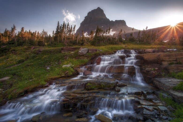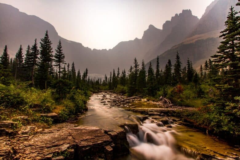 If you’re lucky, you may spot sunbeams over Avalanche Creek, as pictured here.